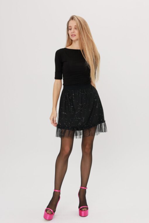Black Mini Sequin Tulle Skirt